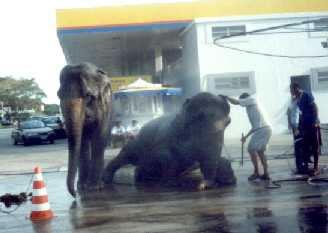 Elefantes do Circo Garcia num posto de gasolina do Rio de Janeiro Foto cedida por Andrea Lambert