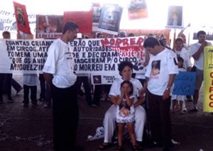 À frente, a família do menino que foi morto por leões do