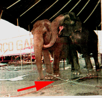 Elefantes do Circo Garcia presos por correntes Foto cedida por Andrea Lambert